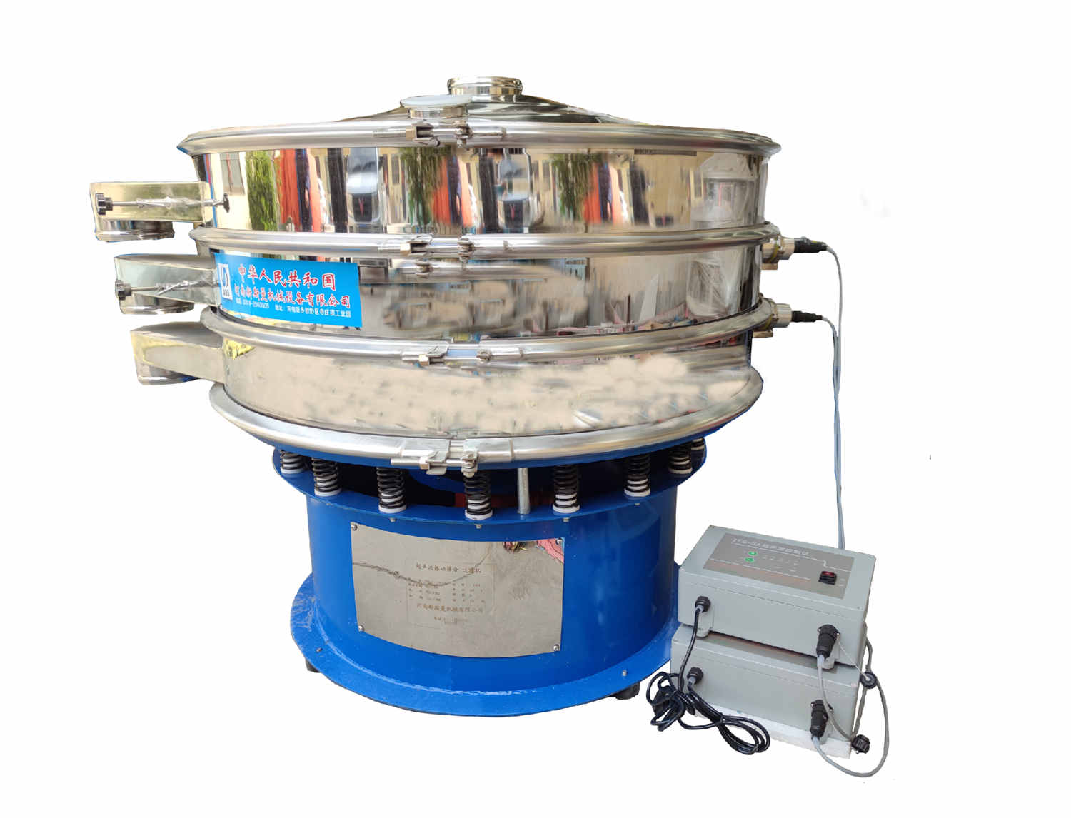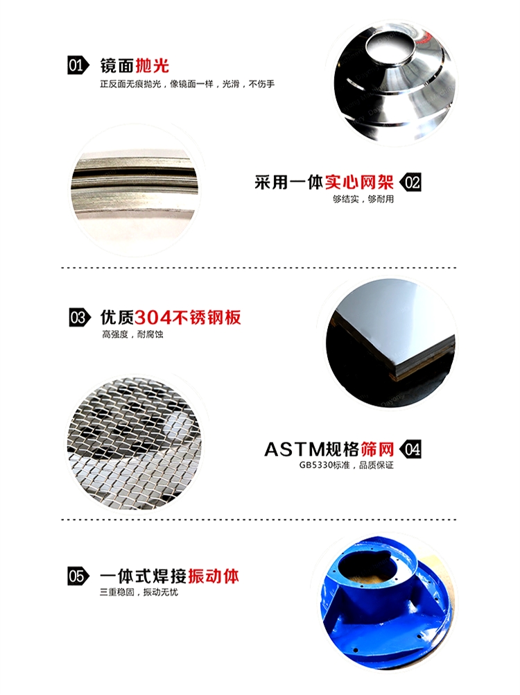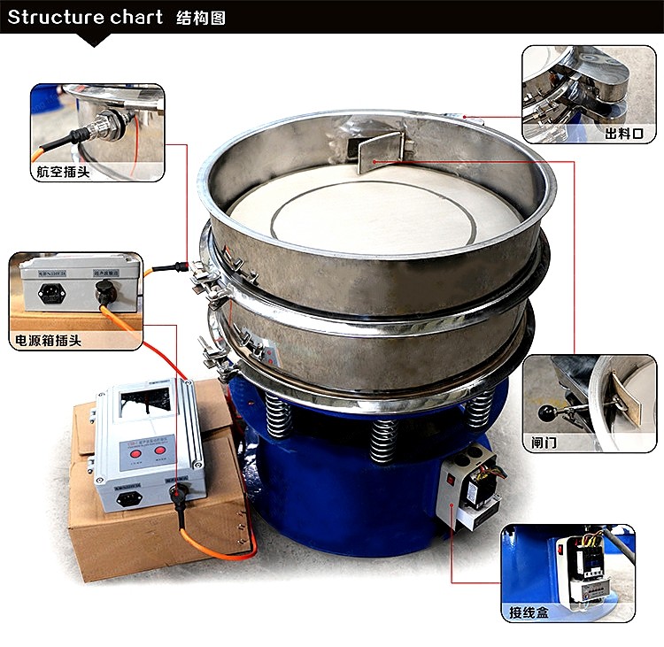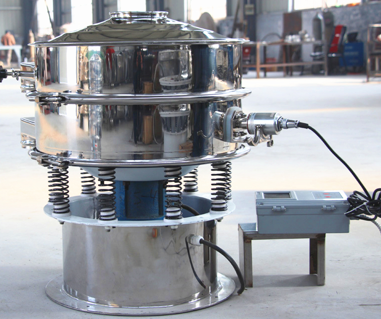 超聲波振動篩是在旋振篩的基礎(chǔ)上引入了超聲波清網(wǎng)裝置,通過將220V、50Hz或110V、60Hz電能轉(zhuǎn)化為18KHz的高頻電能,輸入超聲換能器,將其變成18KHz機械振動,從而達(dá)到高效篩分和迅速清網(wǎng)的目的,使超微細(xì)粉篩分成為易事。該系統(tǒng)在傳統(tǒng)的振動篩基礎(chǔ)上在篩網(wǎng)上引入一個低振幅、高頻率的超聲振動波(機械波),以改善超微細(xì)粉體的篩分性能。特別適合高附加值精細(xì)粉體的用戶使用。超聲波篩分系統(tǒng)是一種簡單實用、可靠的篩分系統(tǒng),是當(dāng)前網(wǎng)孔堵塞的有效的解決方法??蓮V泛應(yīng)用于制藥、冶金、化工、選礦、食品等要求精細(xì)篩分過濾的行業(yè),篩分過濾精度高,有效解決因團(tuán)聚、靜電、強吸附性卡堵網(wǎng)孔等篩分難題,是國內(nèi)篩分行業(yè)的一項重大技術(shù)突破。